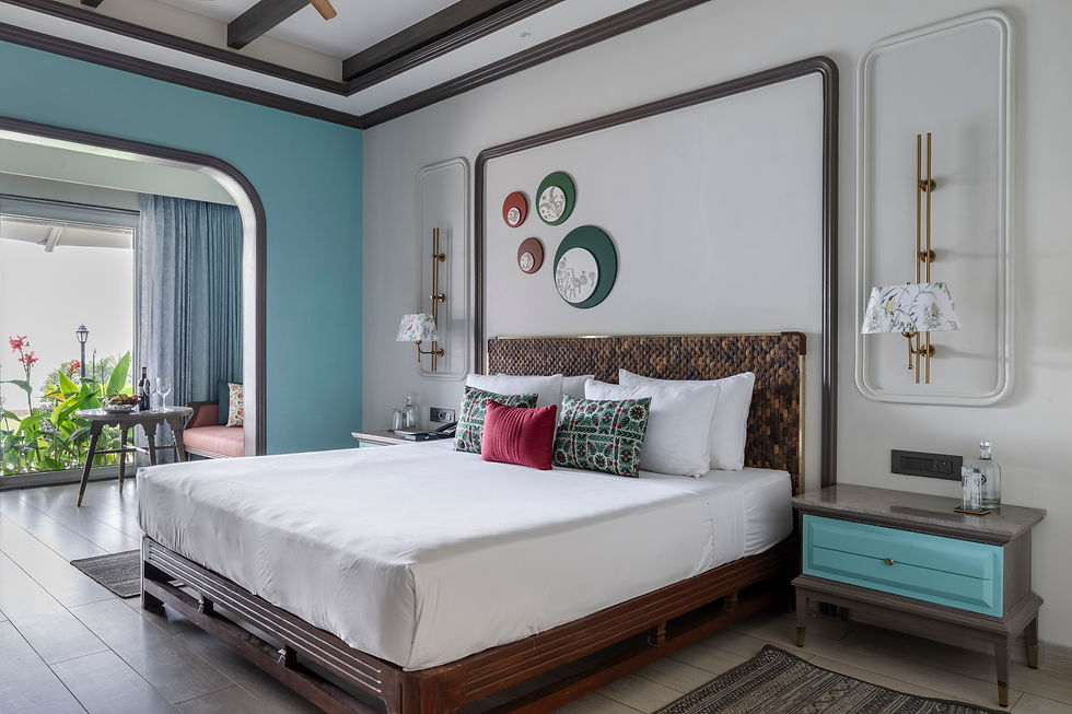 The rooms of the hotel showcase a "bouquet of designs", merging authentic antique furniture, retaining a historical flavour. The planning ensured that rooms were always visually connected to the outdoors. Whether through large windows framing the hills or garden-facing verandahs, every room offered an experience of immersion in nature. Each room varies in age, character, and style to maintain the aged architectural honesty, which gives way to a cohesive as well as diverse experience for the guests. Some rooms are rooted in colonial tradition, others are defined by modern classic expressions, and still others embody contemporary minimalism. This multiplicity isn’t seen as a flaw but as a strength — each room offering a distinct narrative, shaped by the era in which it was built. There are antique beds that are over a century old, refinished and reframed in updated suites. Some pieces were retained in their original form, others restored and carefully integrated. The focus was on quiet luxury, where entertainment came not from devices but from the drama of the landscape.
